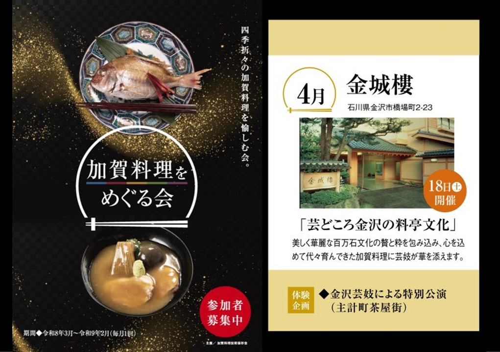 来る令和8年4月18日(土)に、加賀料理や金沢芸妓などの文化を堪能する「加賀料理をめぐる会」を開催いたします。